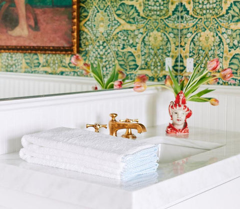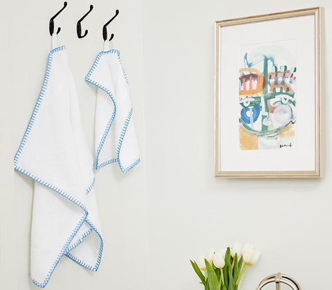 - If you use skincare products with benzoyl peroxide, we recommend our white piped towels to avoid any risk of discoloration